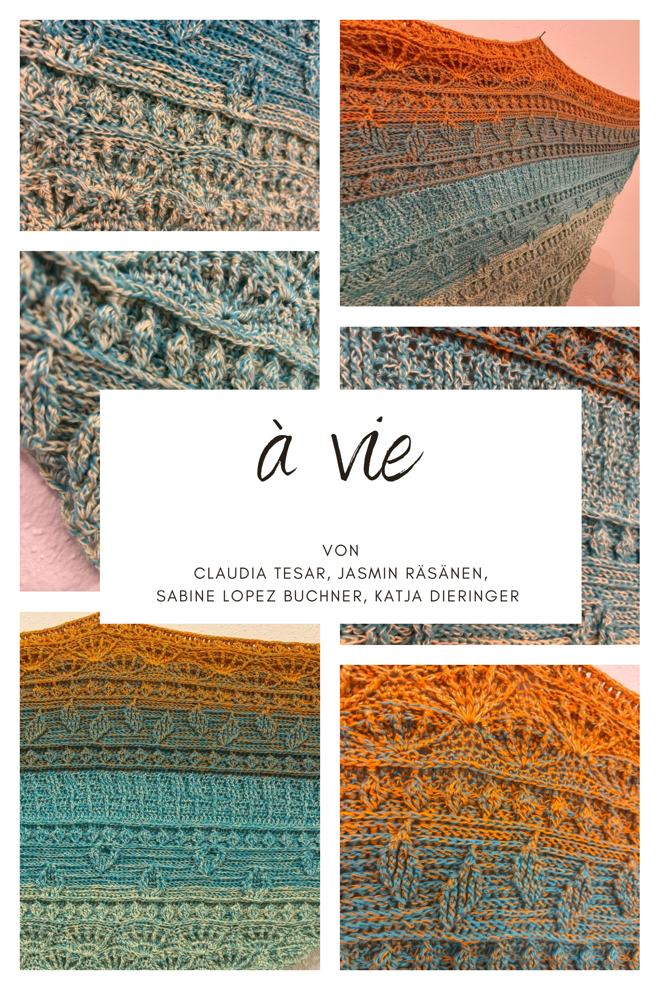 Die Anfangsbuchstaben der Tücher ergeben zusammen das Wort á vie, was aus dem Französischen stammt und so viel wie „fürs Leben“ bedeutet. Einen passenderen Namen für ein Tuch zu einem Projekt, das Designer, Wickler und Häkelfreunde zusammengebracht hat, gibt es nicht. Findest du nicht auch?
